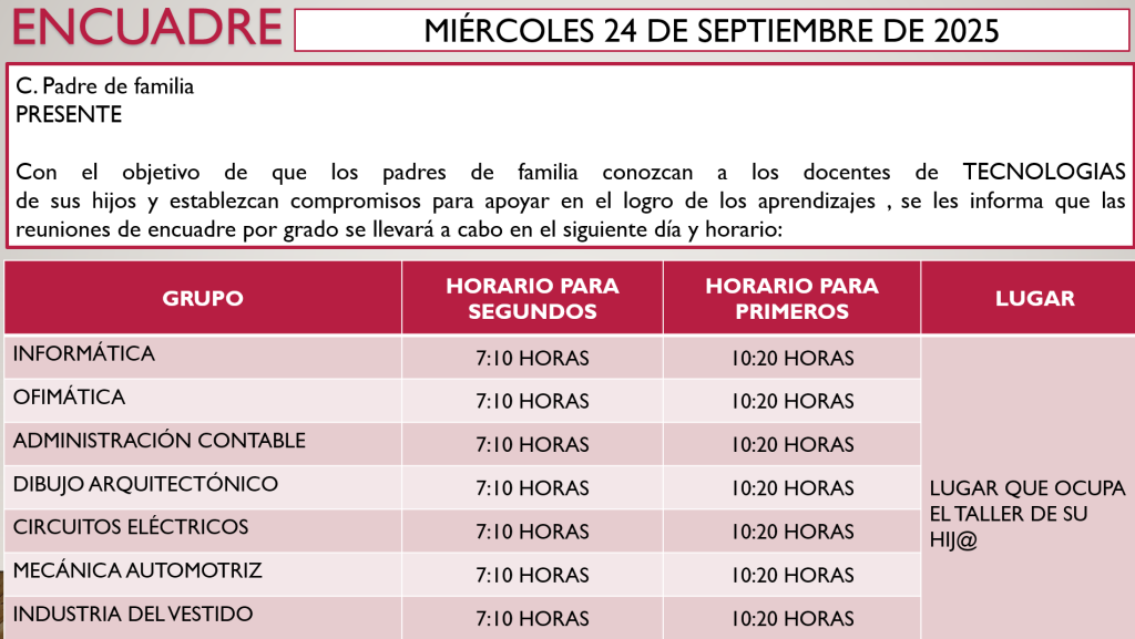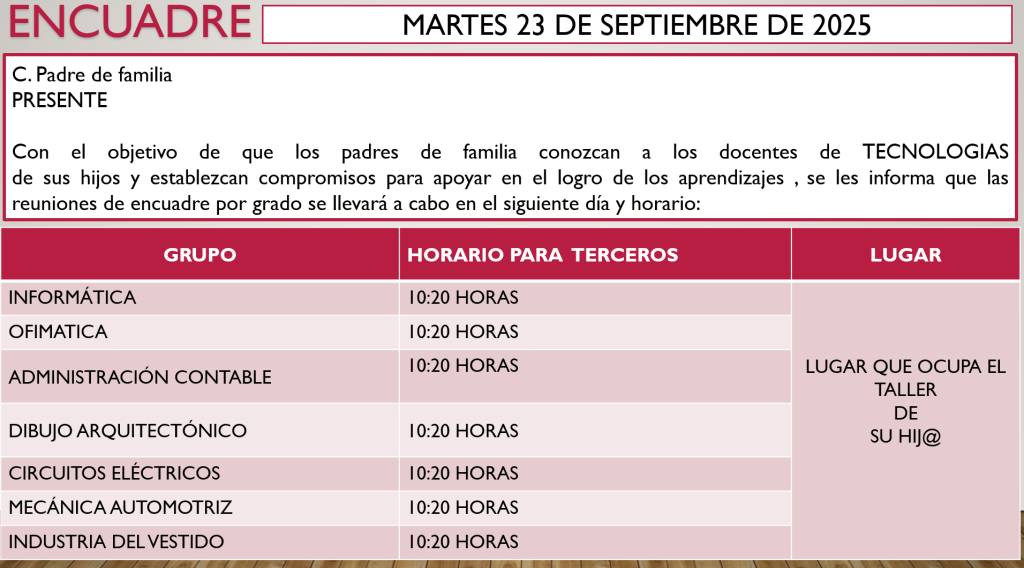 19. COMUNICADO A PADRES DE FAMILIA DE TERCER GRADO DE LA TECNOLOGÍA OFIMATICA